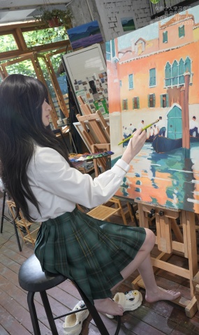 青柠映画 NO.023 小小 画室 蓝吊带抹胸
