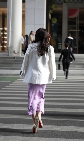 [魔镜街拍] 025 灰色紧身裙街拍